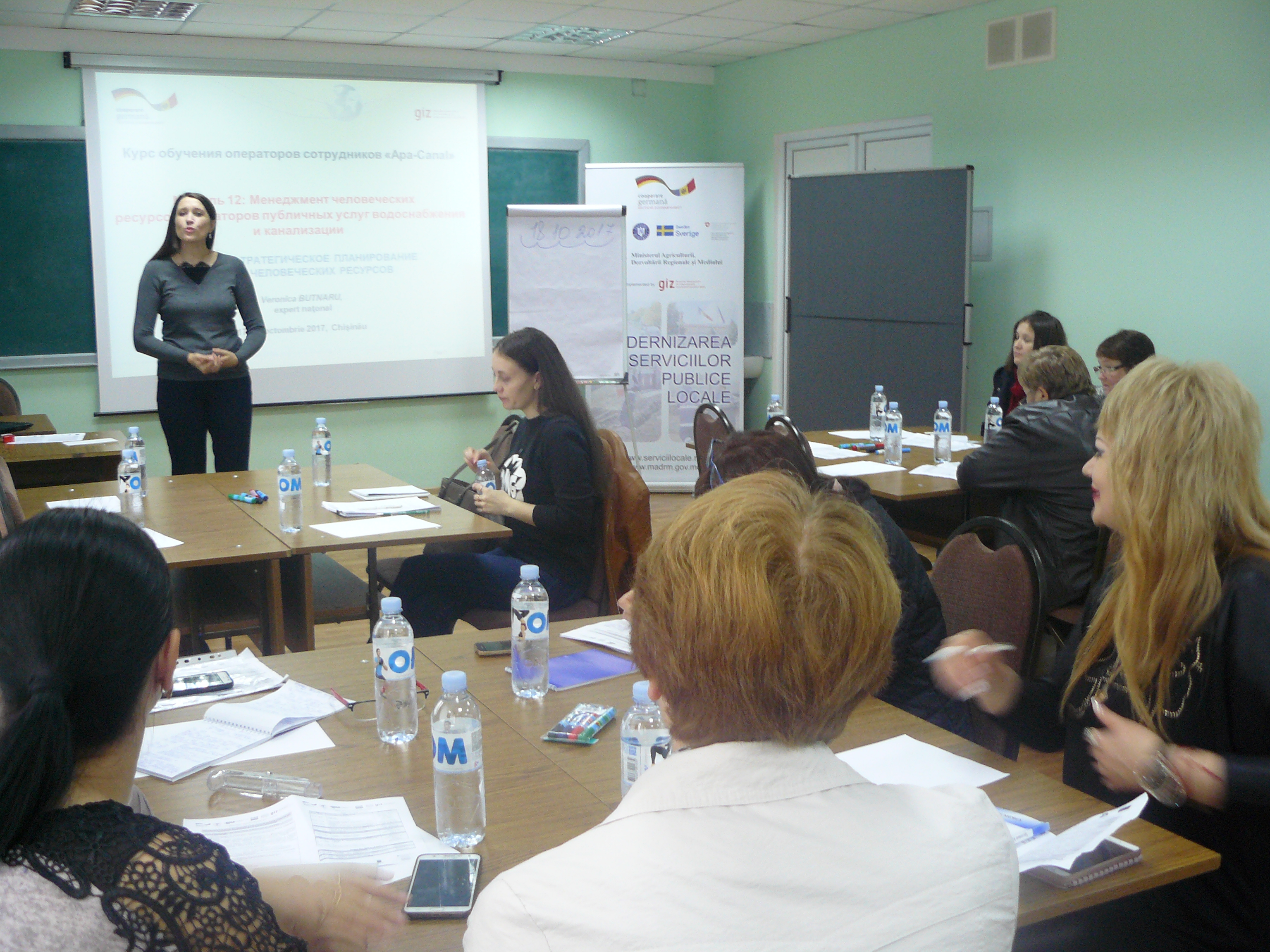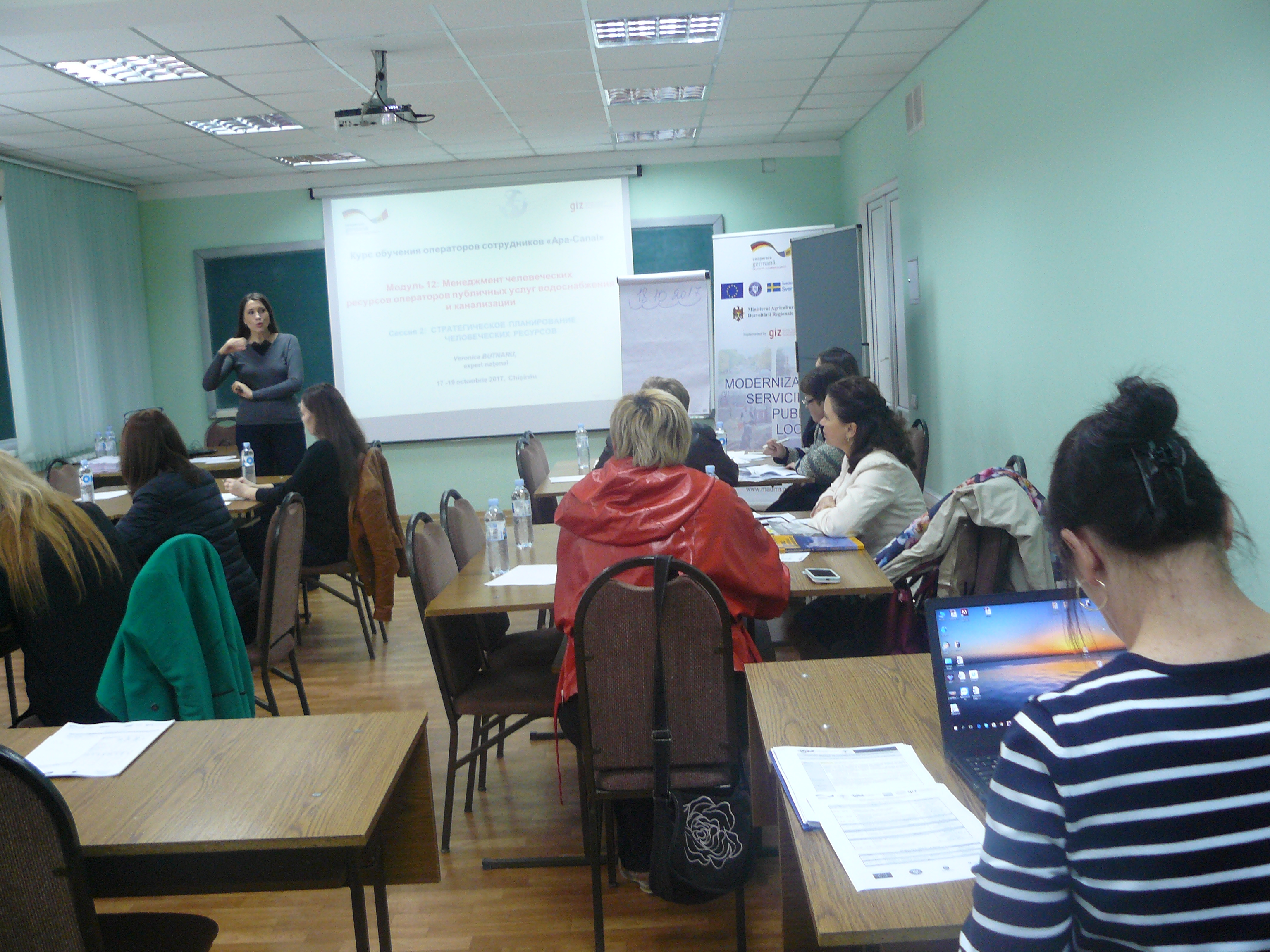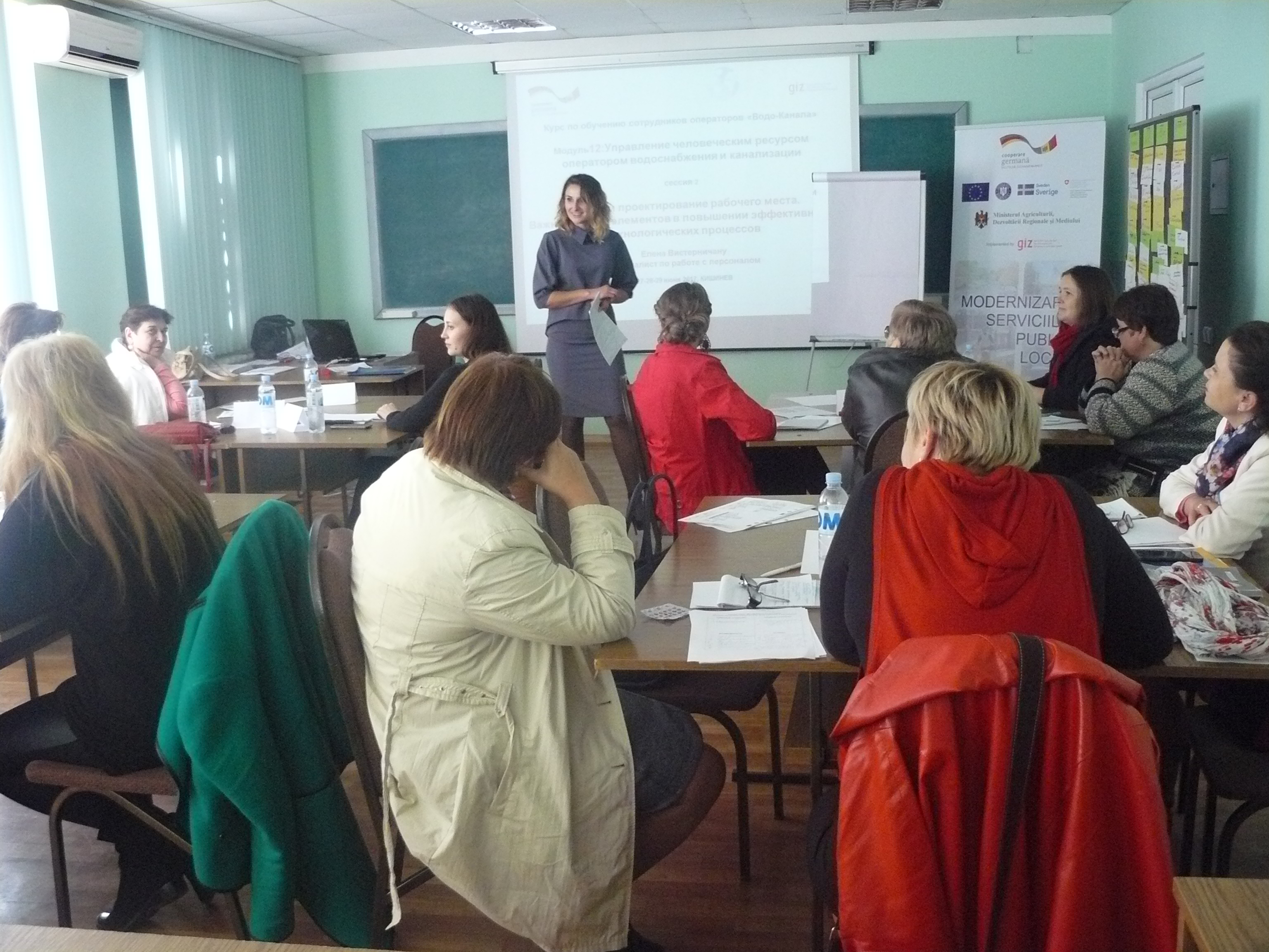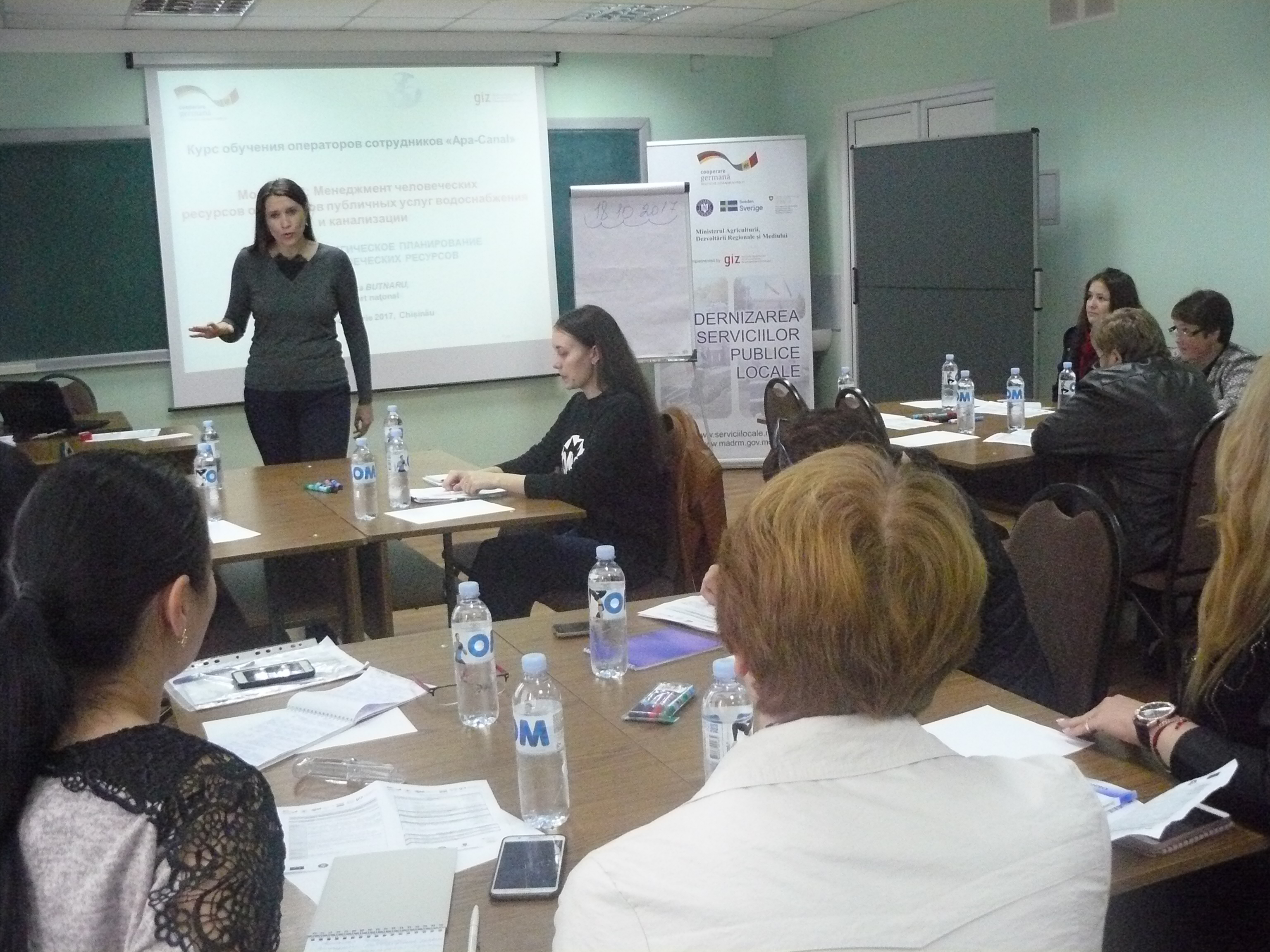 Direcția executivă a Asociației Moldova Apă-Canal (AMAC) în colaborare cu Institutul de Formare Continuă în domeniul Alimentării cu Apă și de Canalizare pentru membri AMAC (IFCAAC), cu suportul financiar al Agenției de Cooperare Internațională a Germaniei (GIZ), în perioada 17-18-19 octombrie 2017, a organizat cursul de instruire pentru Modulul 12: Managementul resurselor umane în cadrul operatorilor serviciilor de alimentare cu apă și de canalizare. Grupul 2 (limba rusă).
