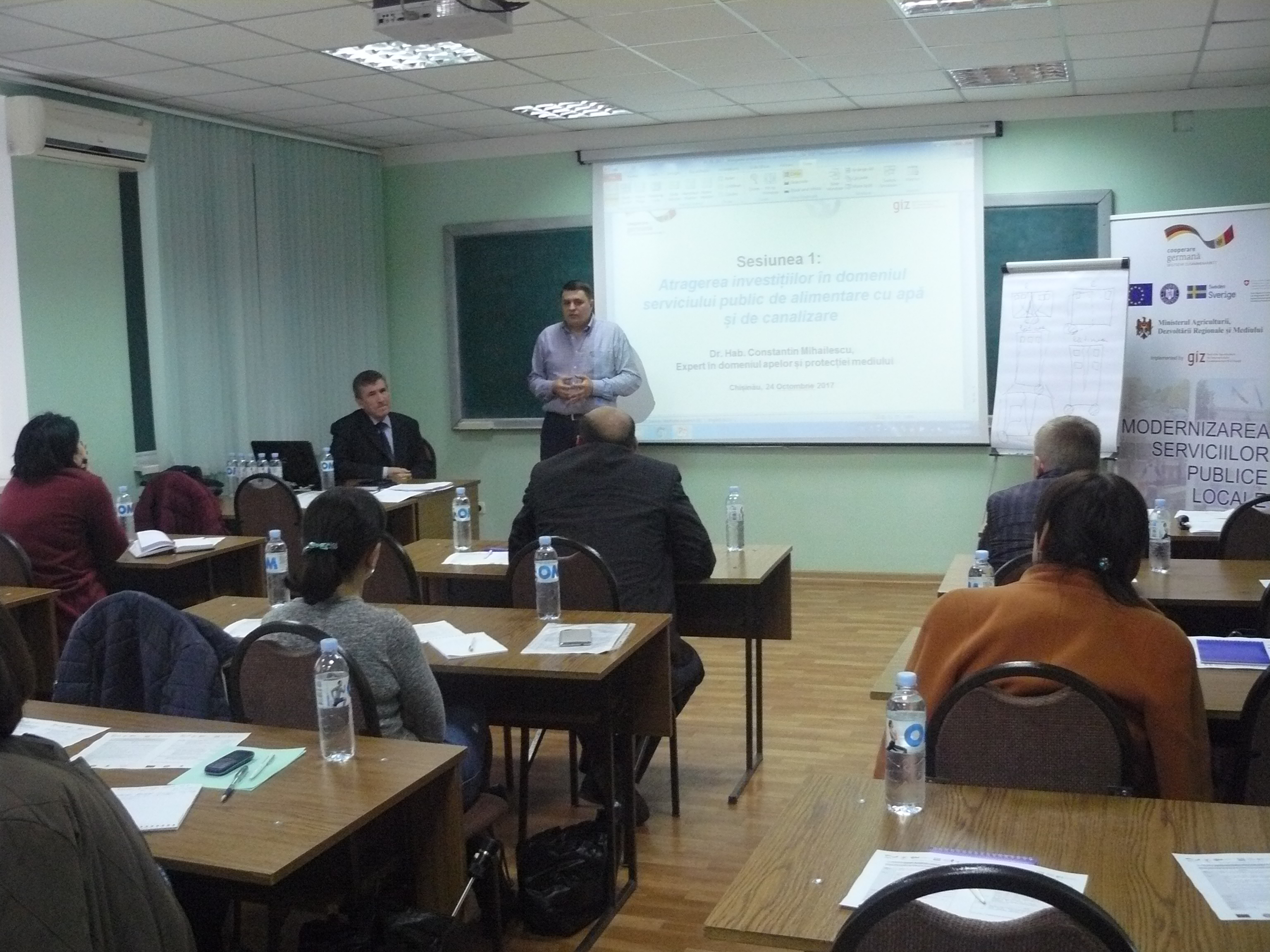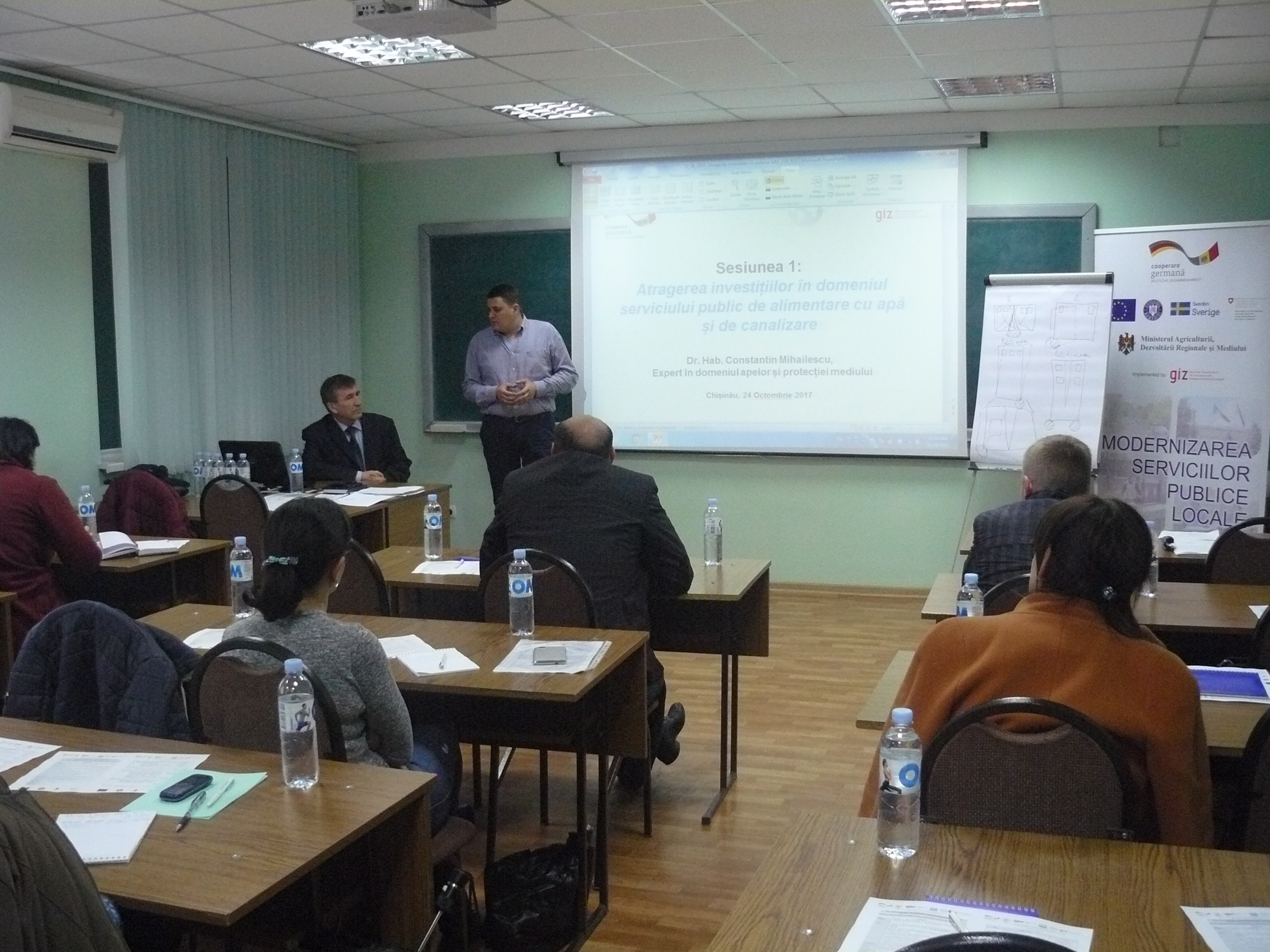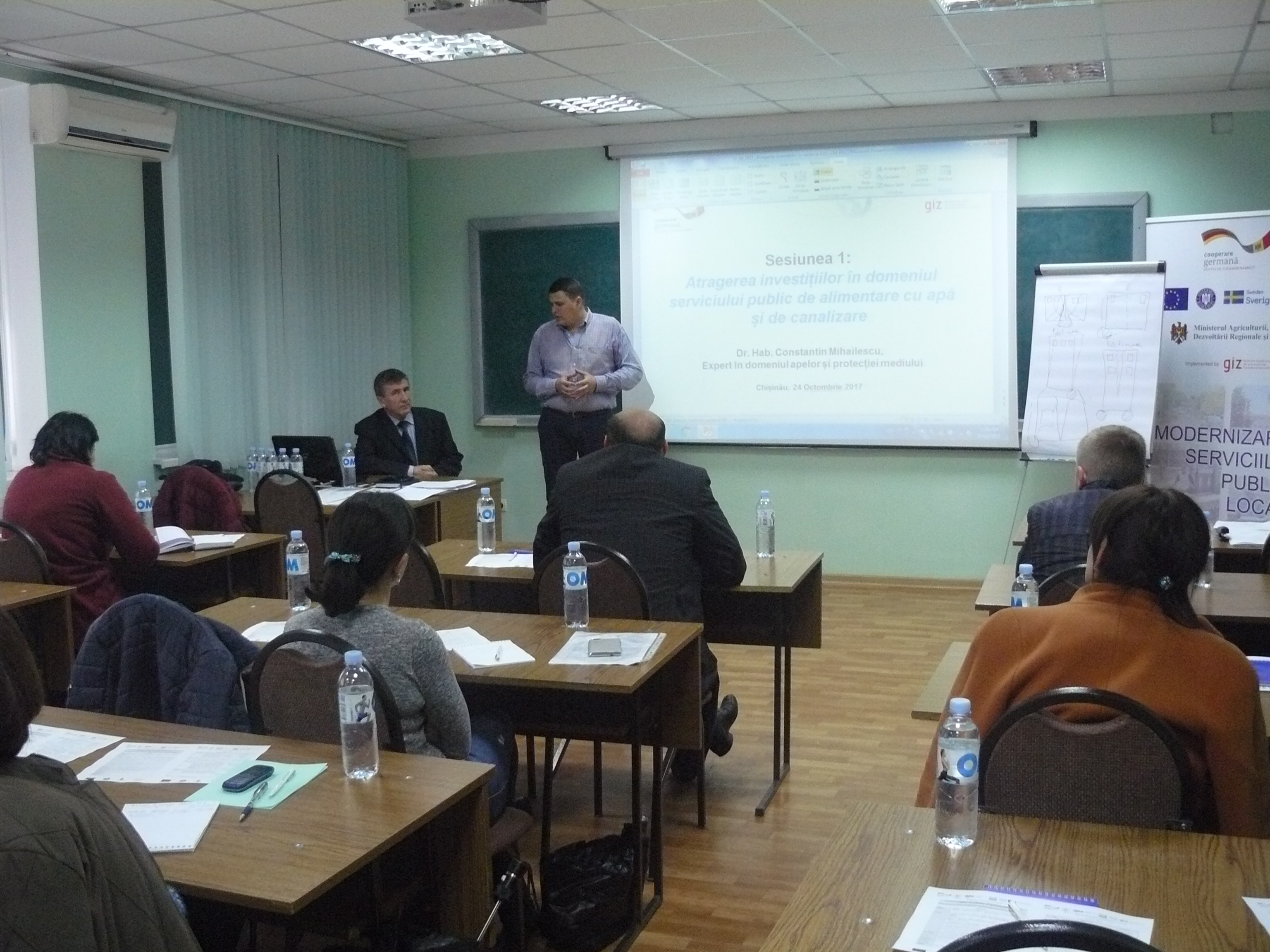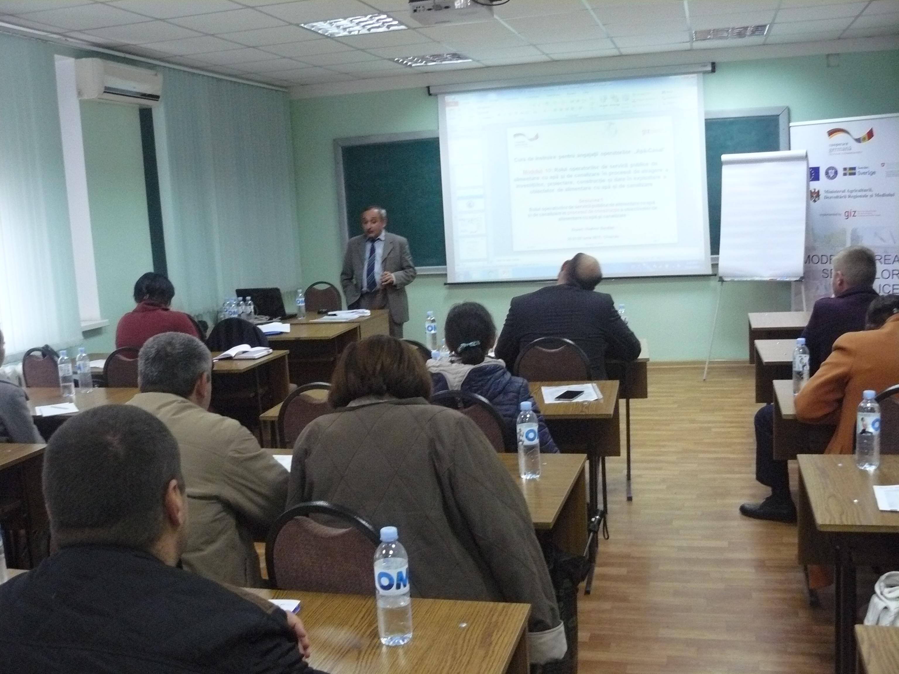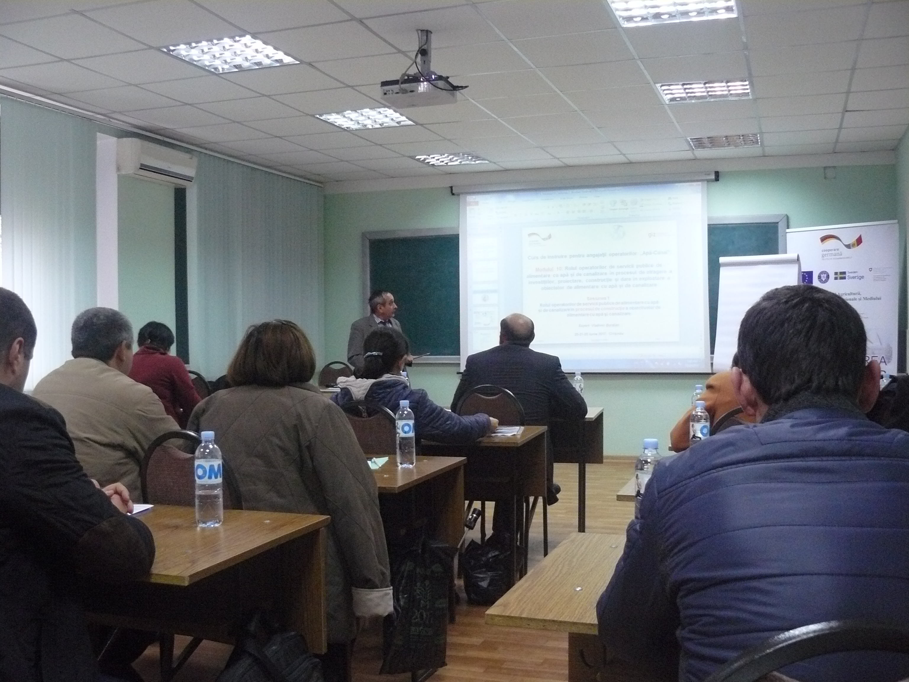 Direcția executivă a Asociației Moldova Apă-Canal (AMAC) în colaborare cu Institutul de Formare Continuă în domeniul Alimentării cu Apă și de Canalizare pentru membri AMAC (IFCAAC), cu suportul financiar al Agenției de Cooperare Internațională a Germaniei (GIZ), în perioada 24-25-26 octombrie 2017, a organizat cursul de instruire pentru Modulul 10: Rolul operatorilor de servicii publice de alimentare cu apă și de canalizare în procesul de atragere a investițiilor, proiectare, construcție și dare în exploatare a obiectelor de alimentare cu apă și de canalizare. Grupul 2 (limba română).