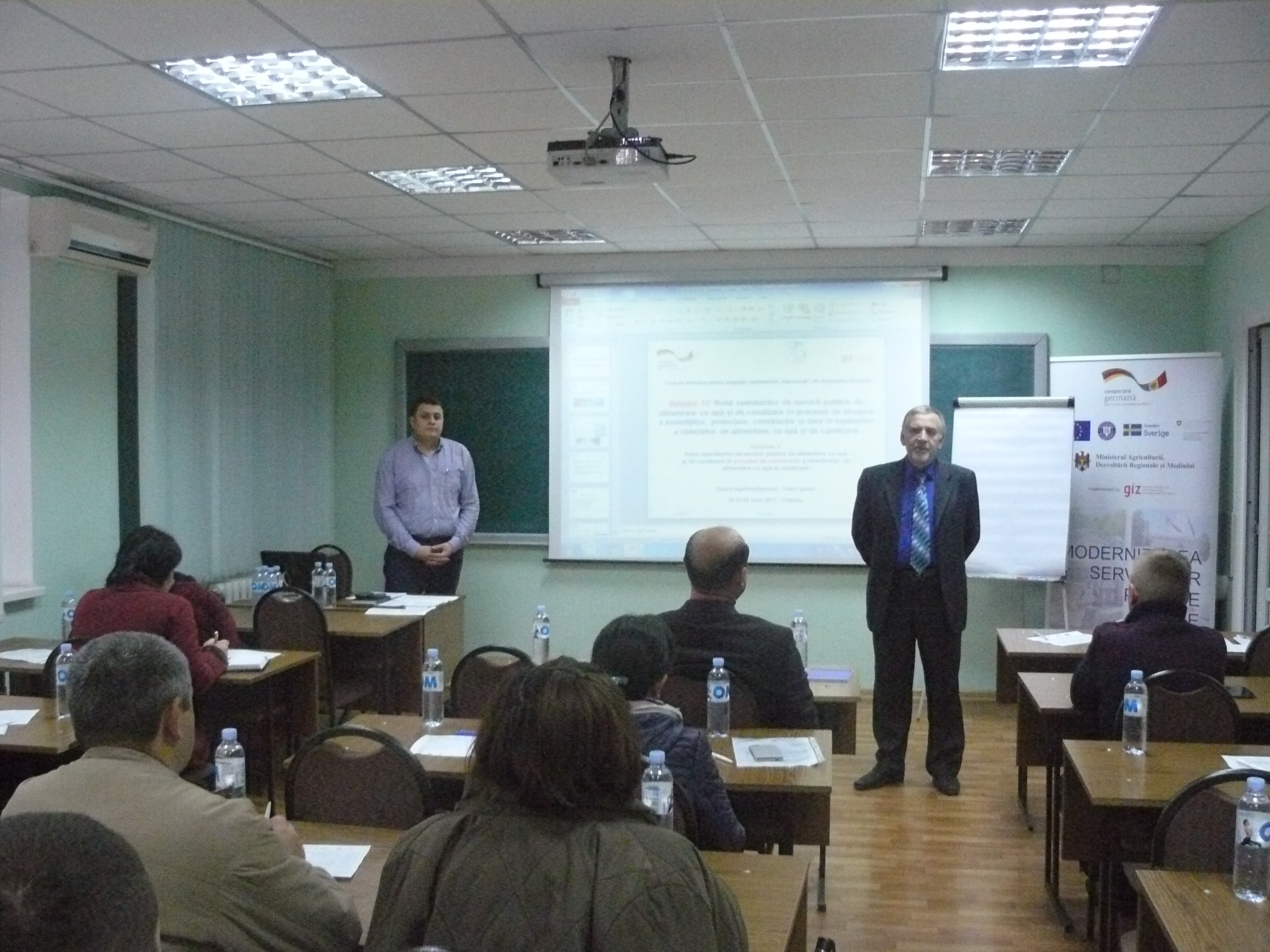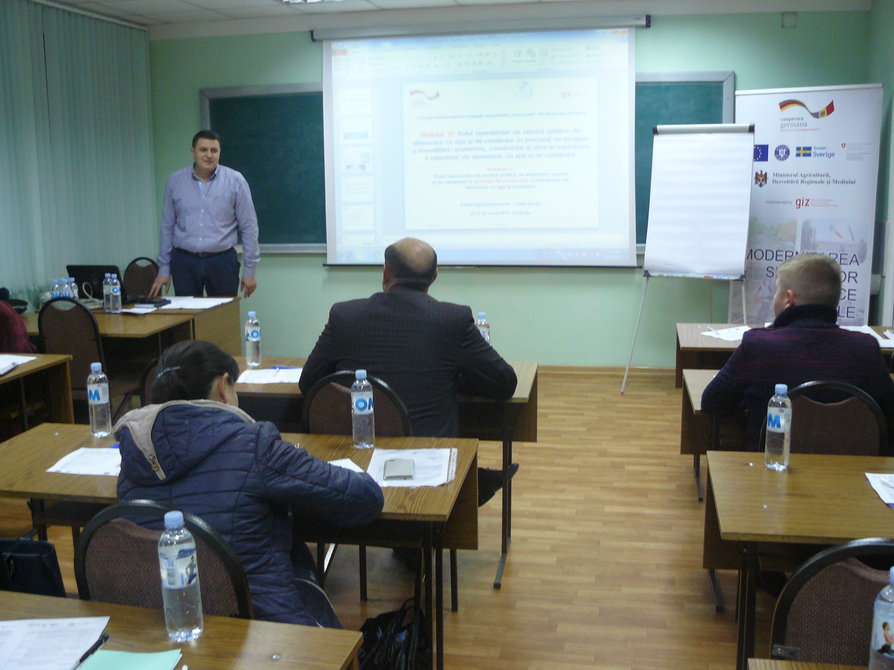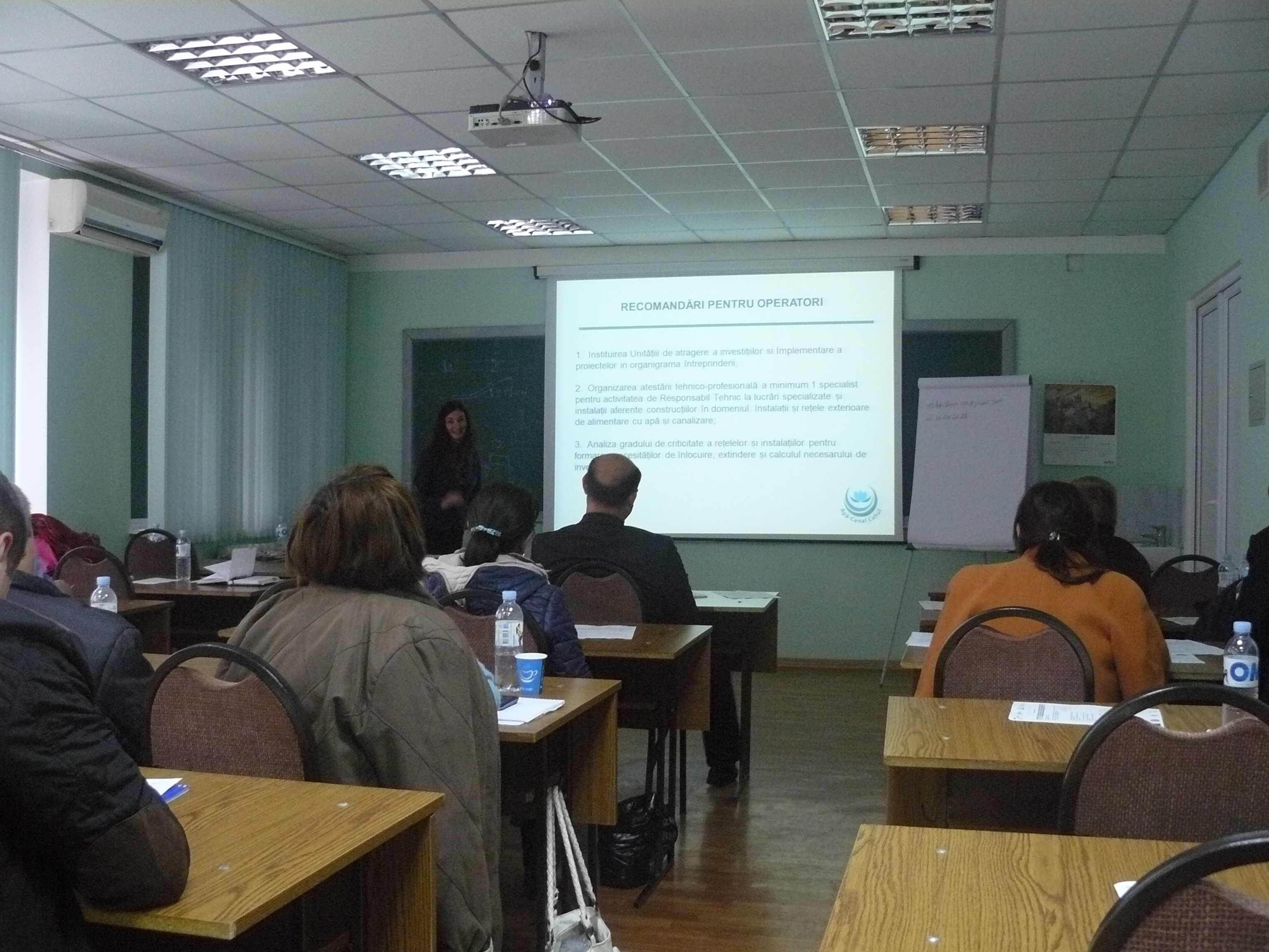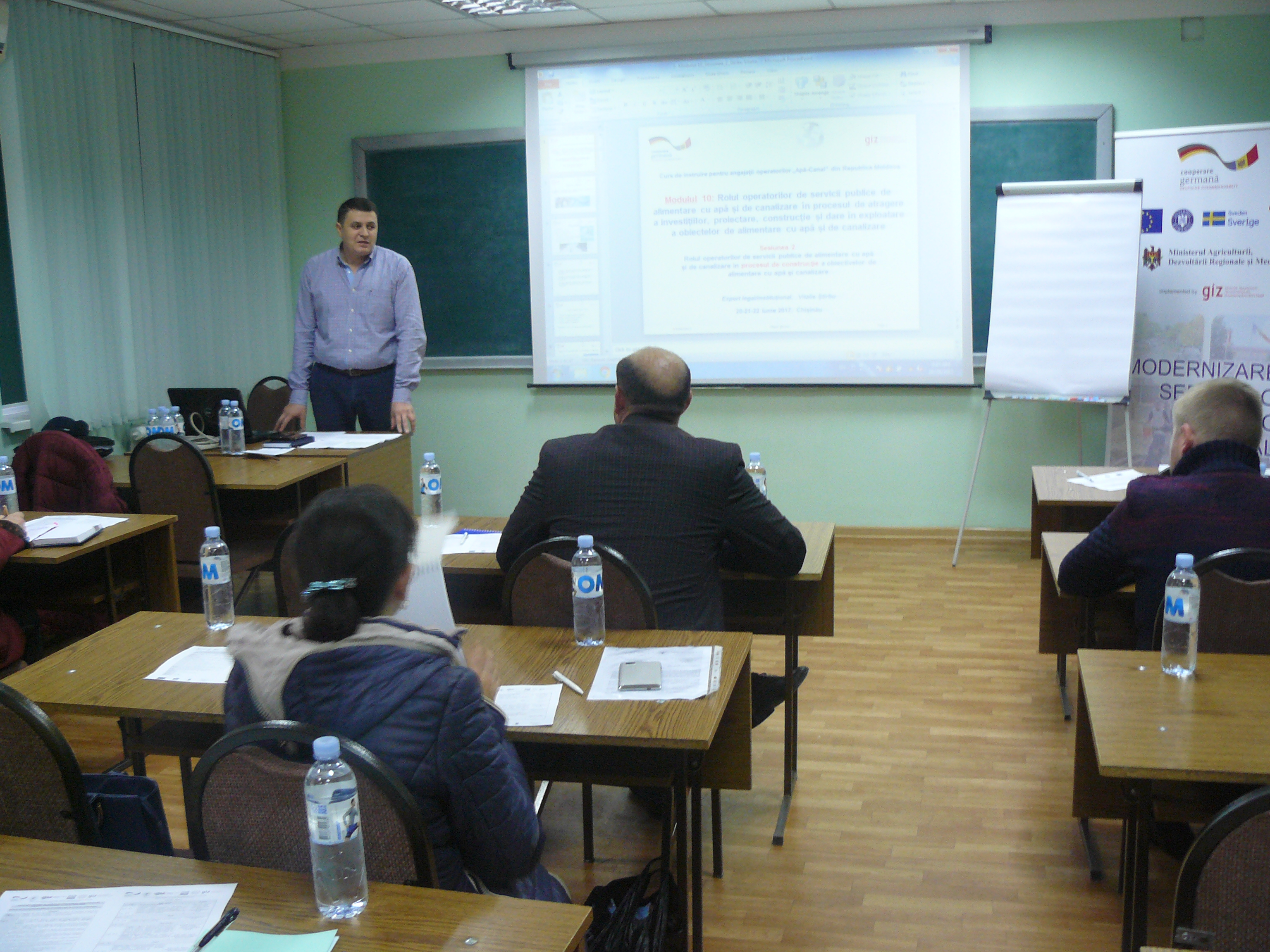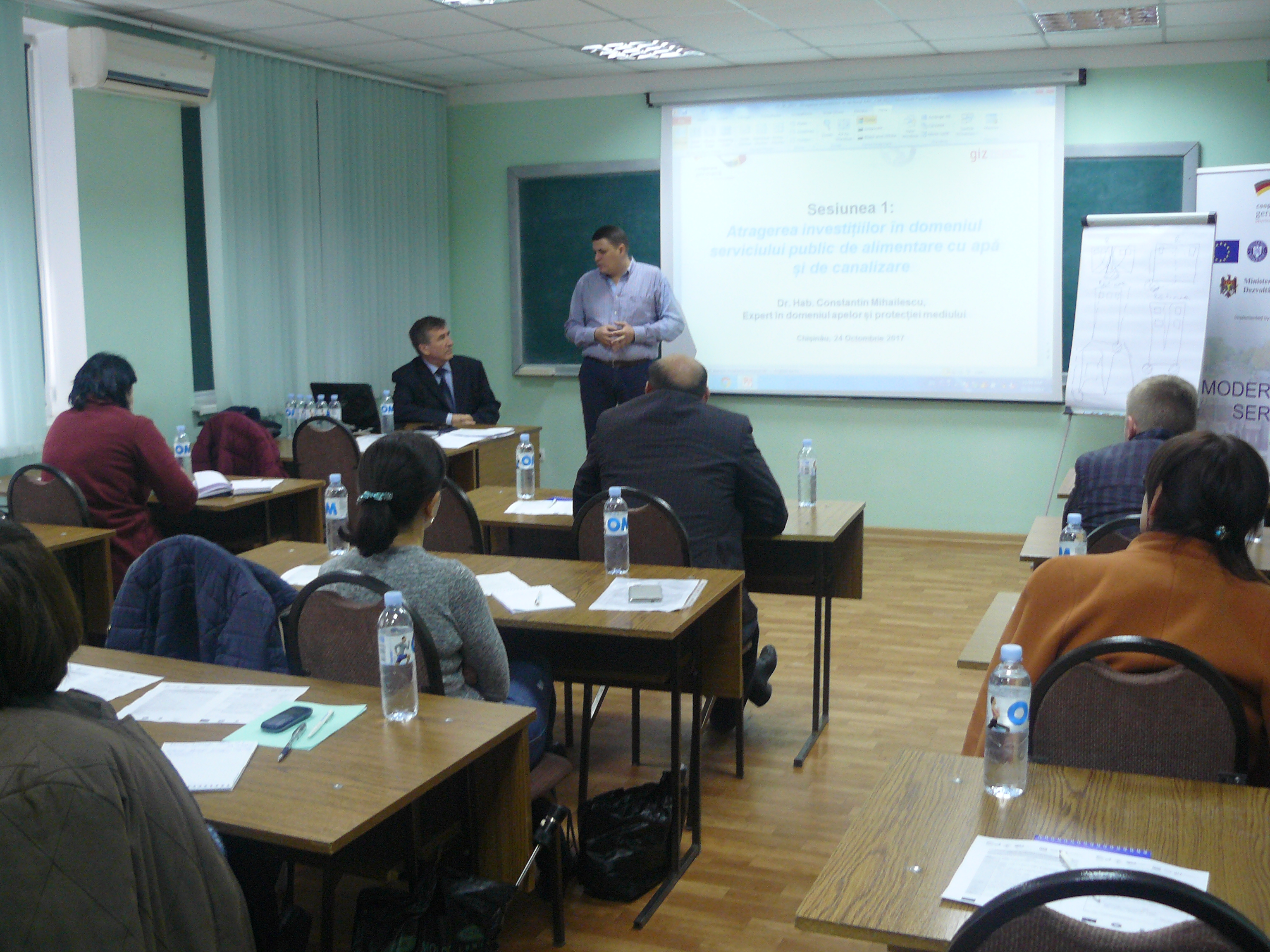 Direcția executivă a Asociației Moldova Apă-Canal (AMAC) în colaborare cu Institutul de Formare Continuă în domeniul Alimentării cu Apă și de Canalizare pentru membri AMAC (IFCAAC), cu suportul financiar al Agenției de Cooperare Internațională a Germaniei (GIZ), în perioada 24-25-26 octombrie 2017, a organizat cursul de instruire pentru Modulul 10: Rolul operatorilor de servicii publice de alimentare cu apă și de canalizare în procesul de atragere a investițiilor, proiectare, construcție și dare în exploatare a obiectelor de alimentare cu apă și de canalizare. Grupul 2 (limba română).