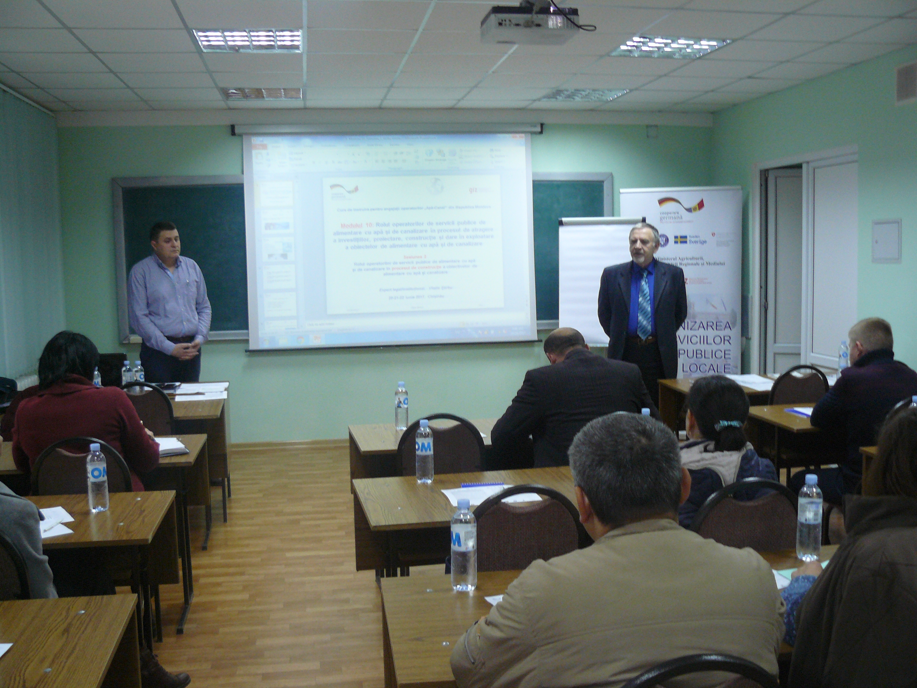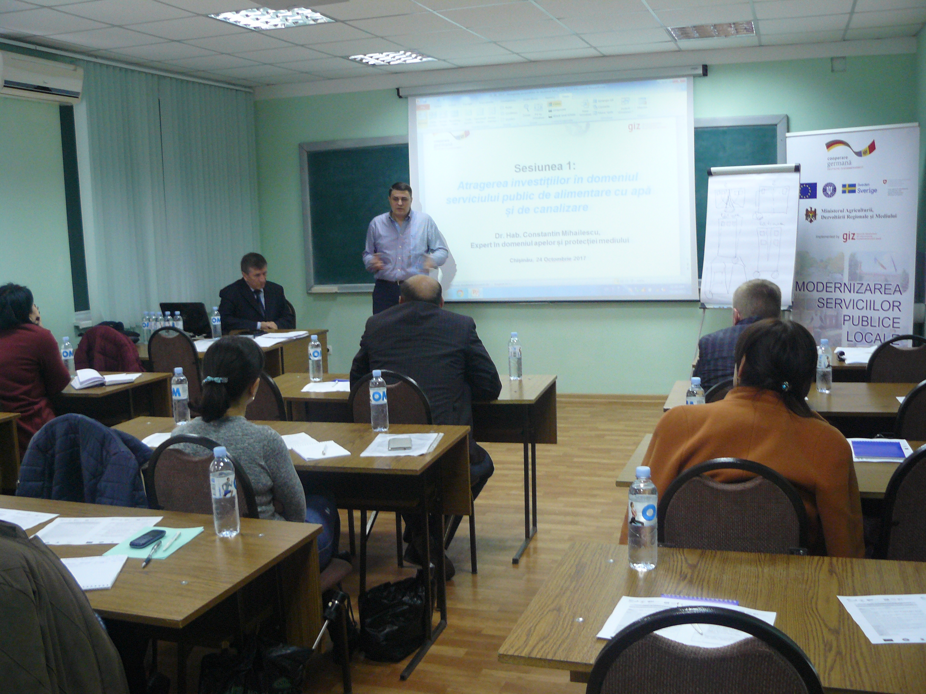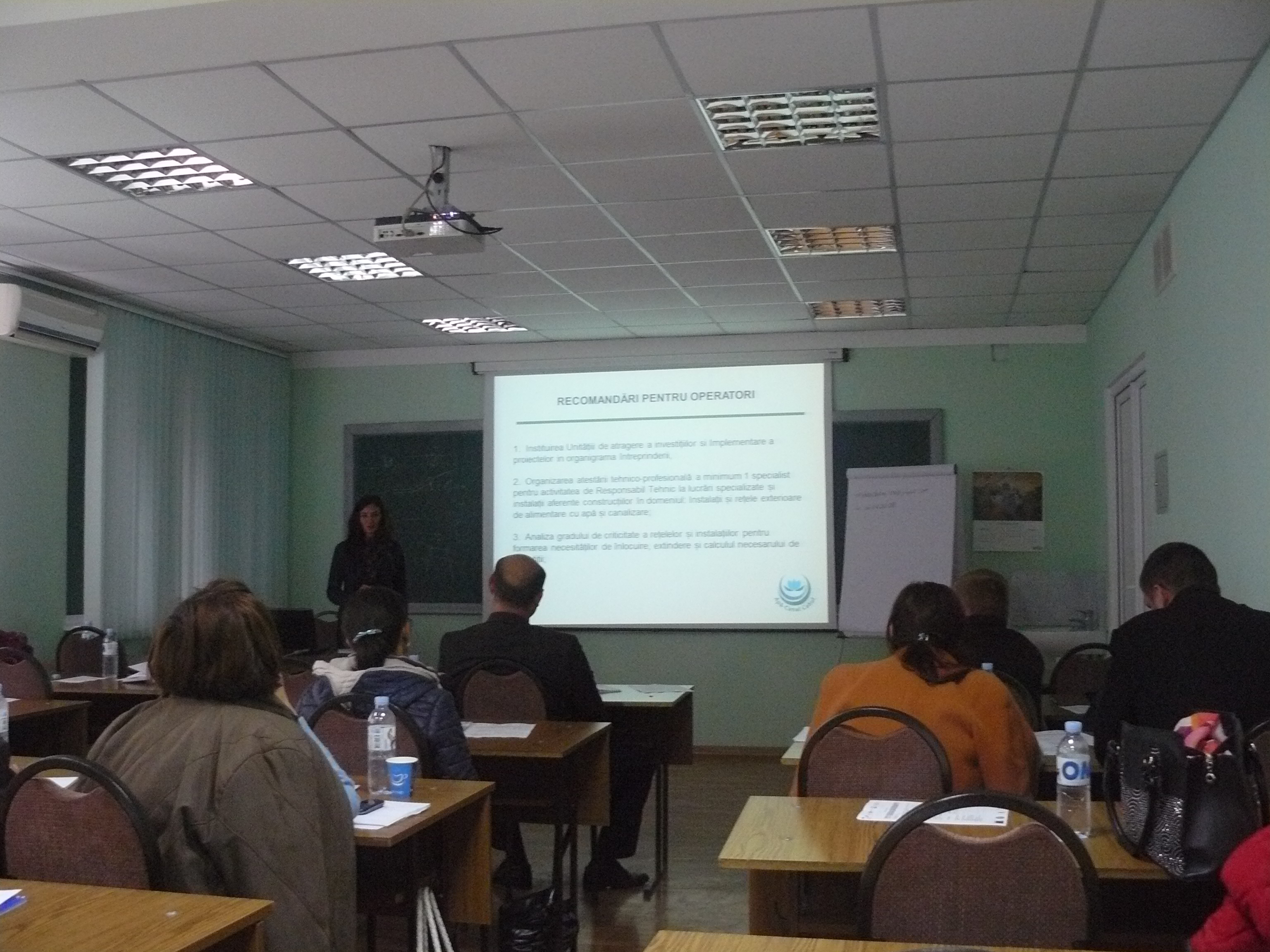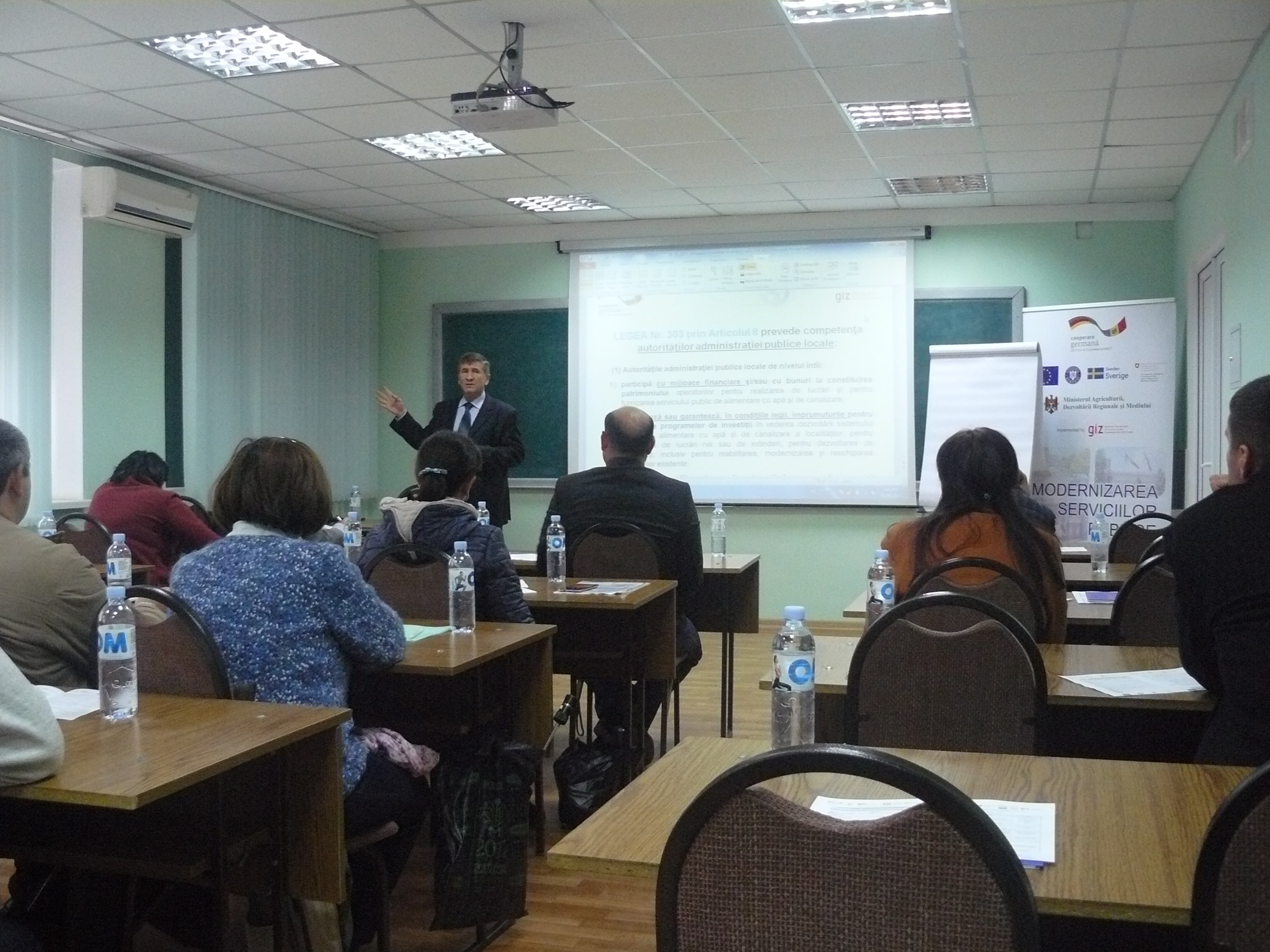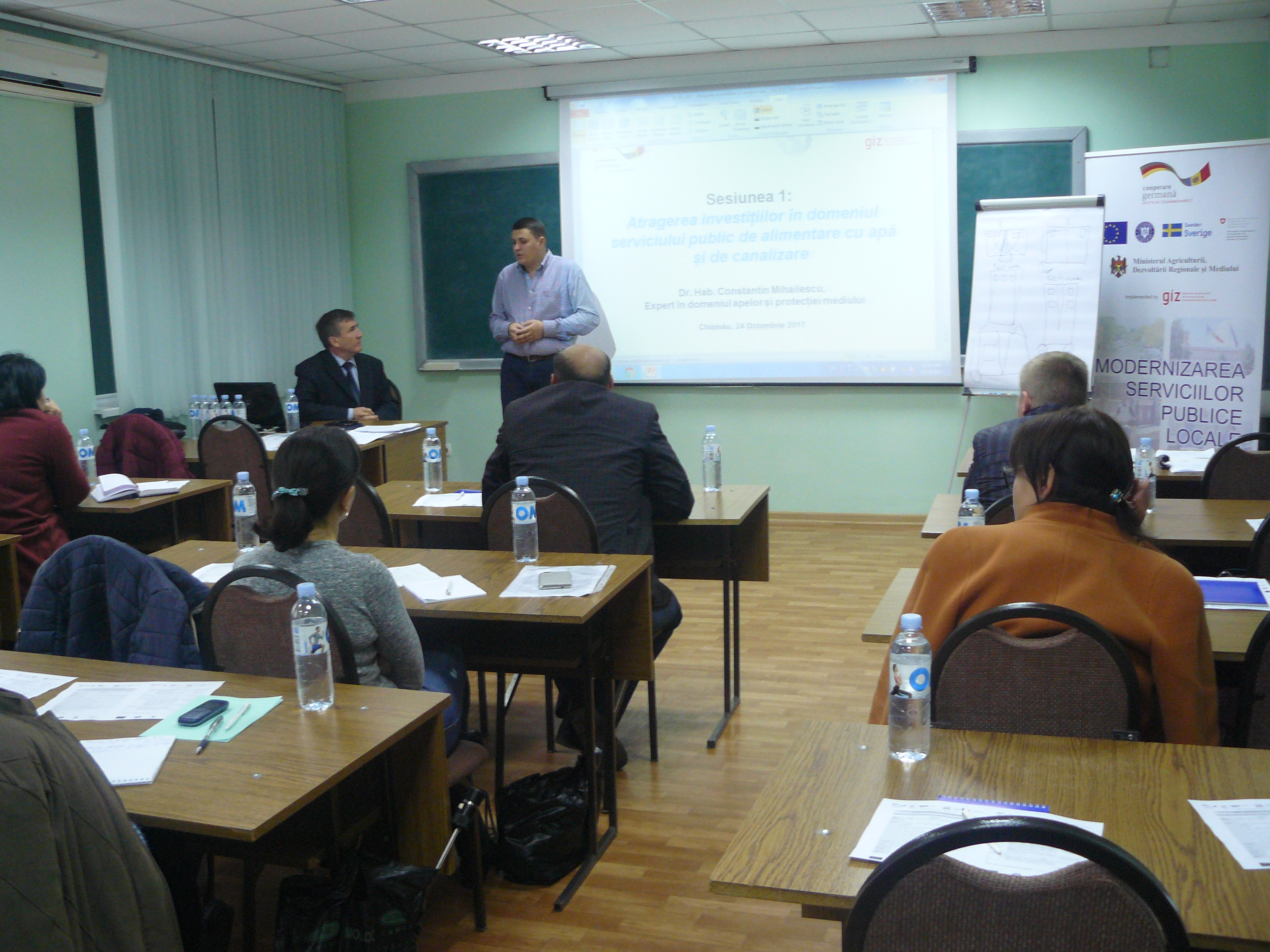Direcția executivă a Asociației Moldova Apă-Canal (AMAC) în colaborare cu Institutul de Formare Continuă în domeniul Alimentării cu Apă și de Canalizare pentru membri AMAC (IFCAAC), cu suportul financiar al Agenției de Cooperare Internațională a Germaniei (GIZ), în perioada 24-25-26 octombrie 2017, a organizat cursul de instruire pentru Modulul 10: Rolul operatorilor de servicii publice de alimentare cu apă și de canalizare în procesul de atragere a investițiilor, proiectare, construcție și dare în exploatare a obiectelor de alimentare cu apă și de canalizare. Grupul 2 (limba română).