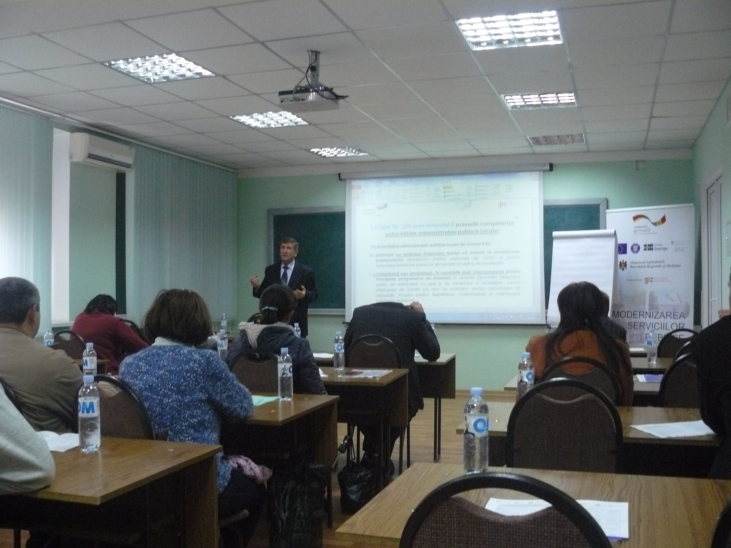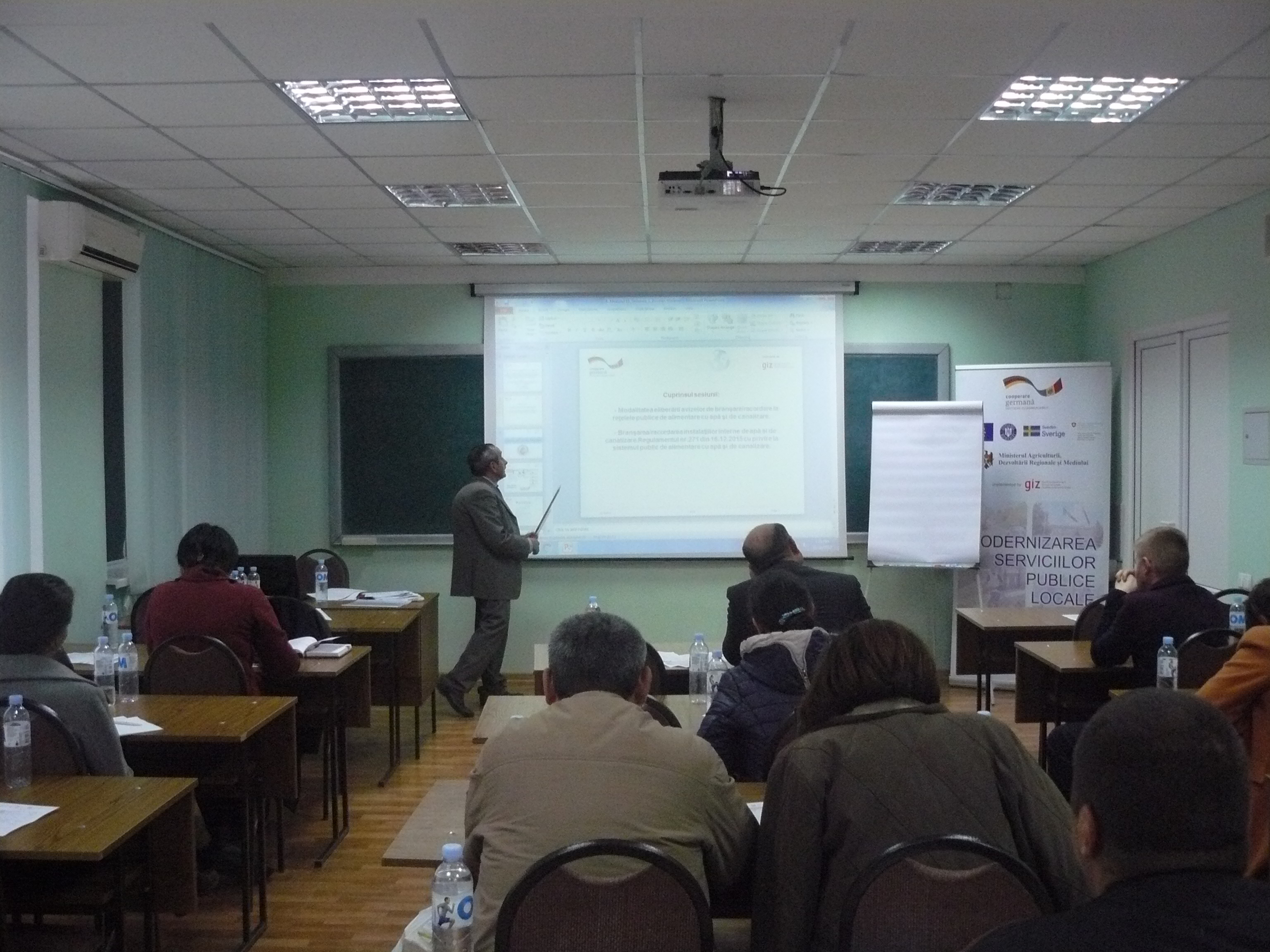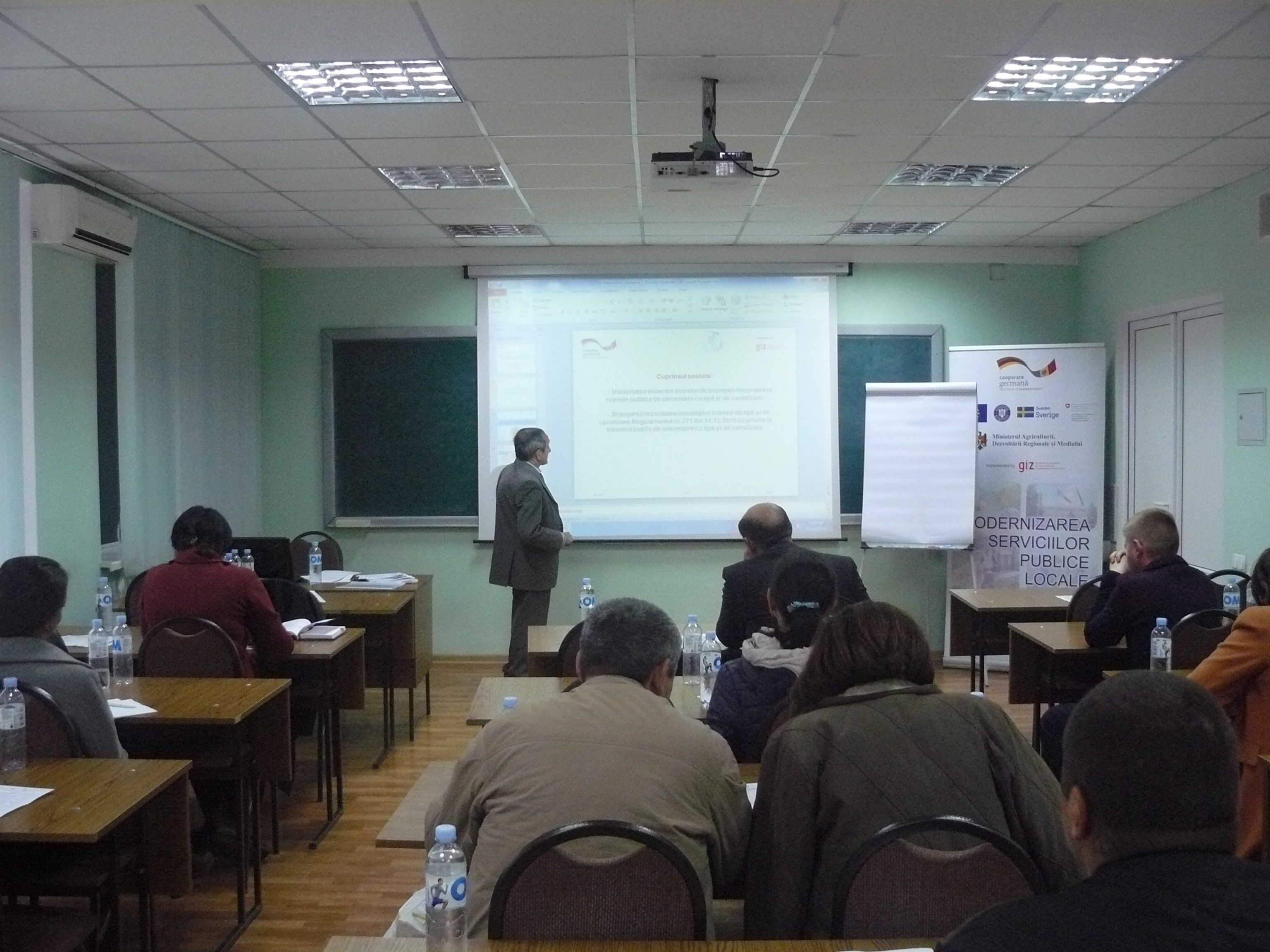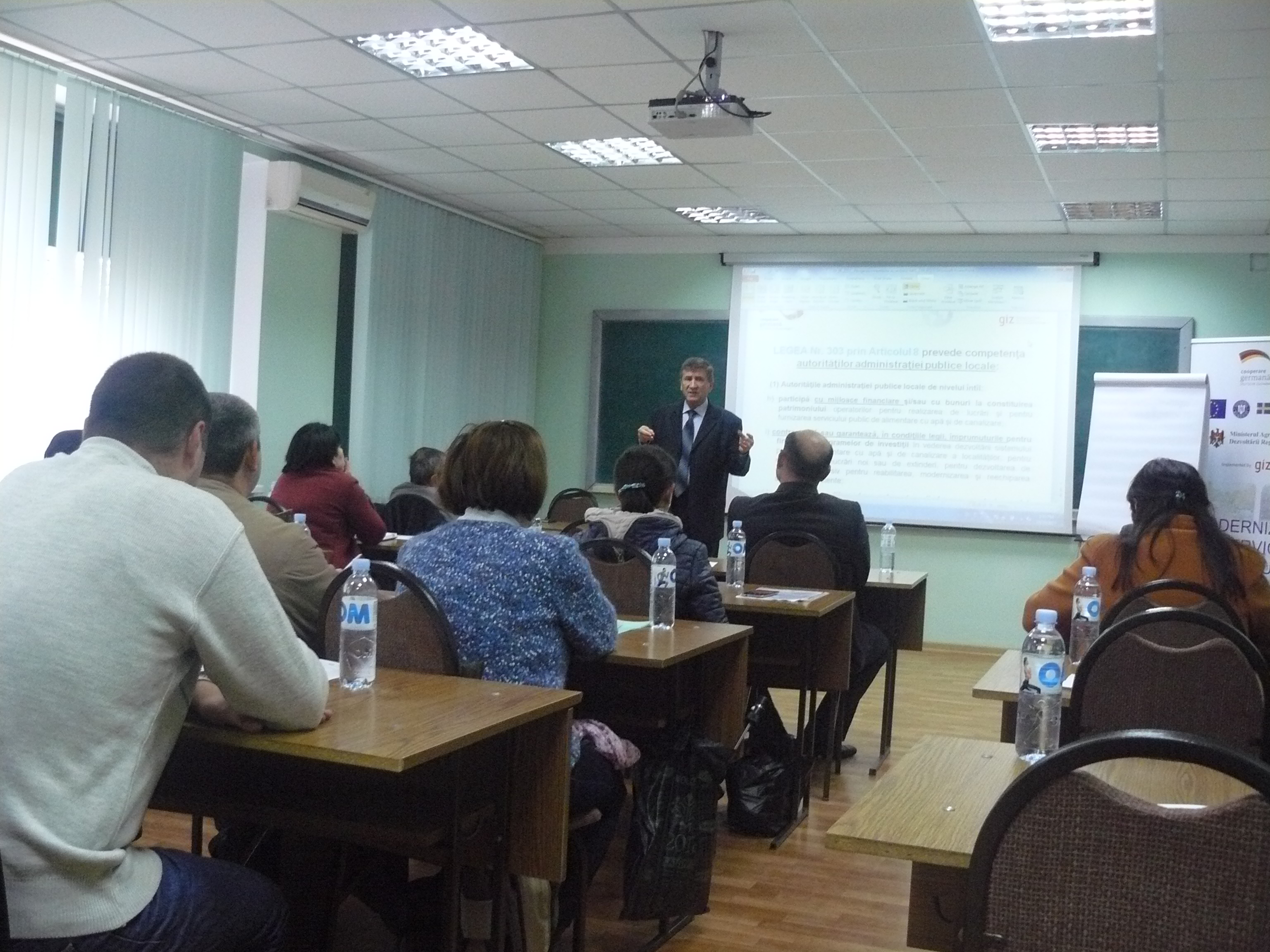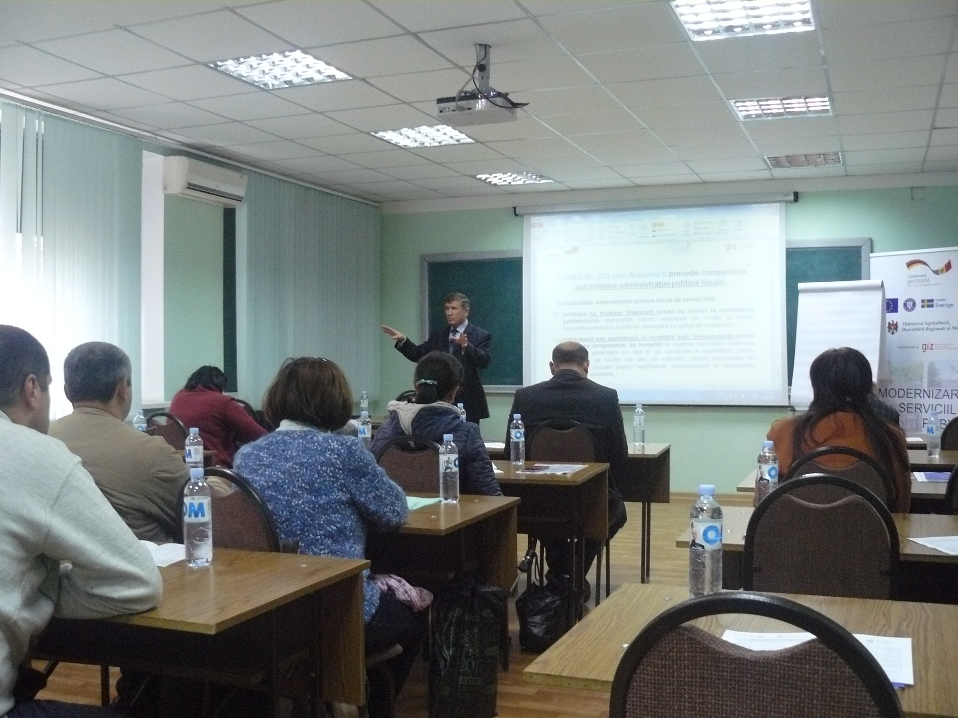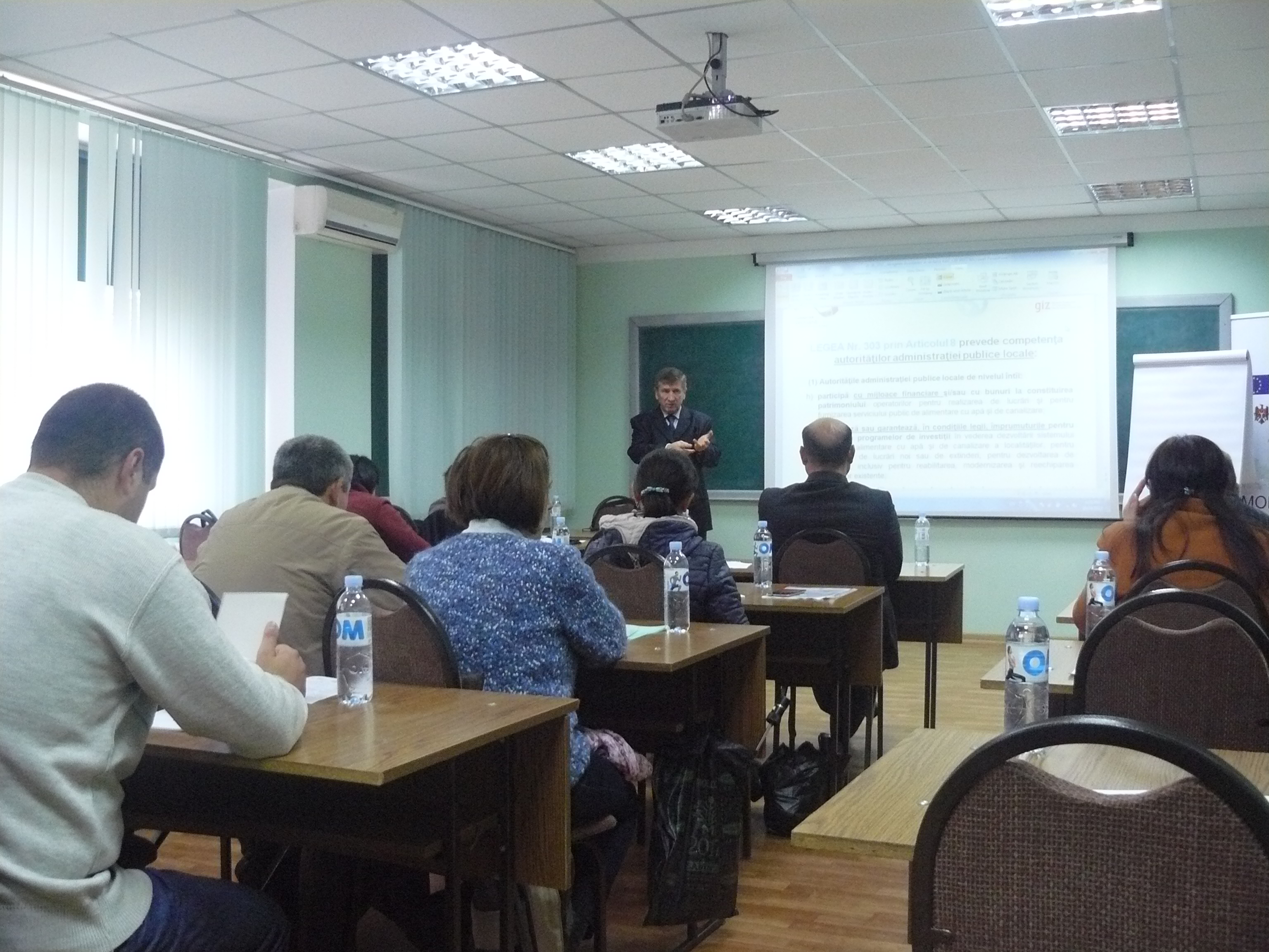 Direcția executivă a Asociației Moldova Apă-Canal (AMAC) în colaborare cu Institutul de Formare Continuă în domeniul Alimentării cu Apă și de Canalizare pentru membri AMAC (IFCAAC), cu suportul financiar al Agenției de Cooperare Internațională a Germaniei (GIZ), în perioada 24-25-26 octombrie 2017, a organizat cursul de instruire pentru Modulul 10: Rolul operatorilor de servicii publice de alimentare cu apă și de canalizare în procesul de atragere a investițiilor, proiectare, construcție și dare în exploatare a obiectelor de alimentare cu apă și de canalizare. Grupul 2 (limba română).
