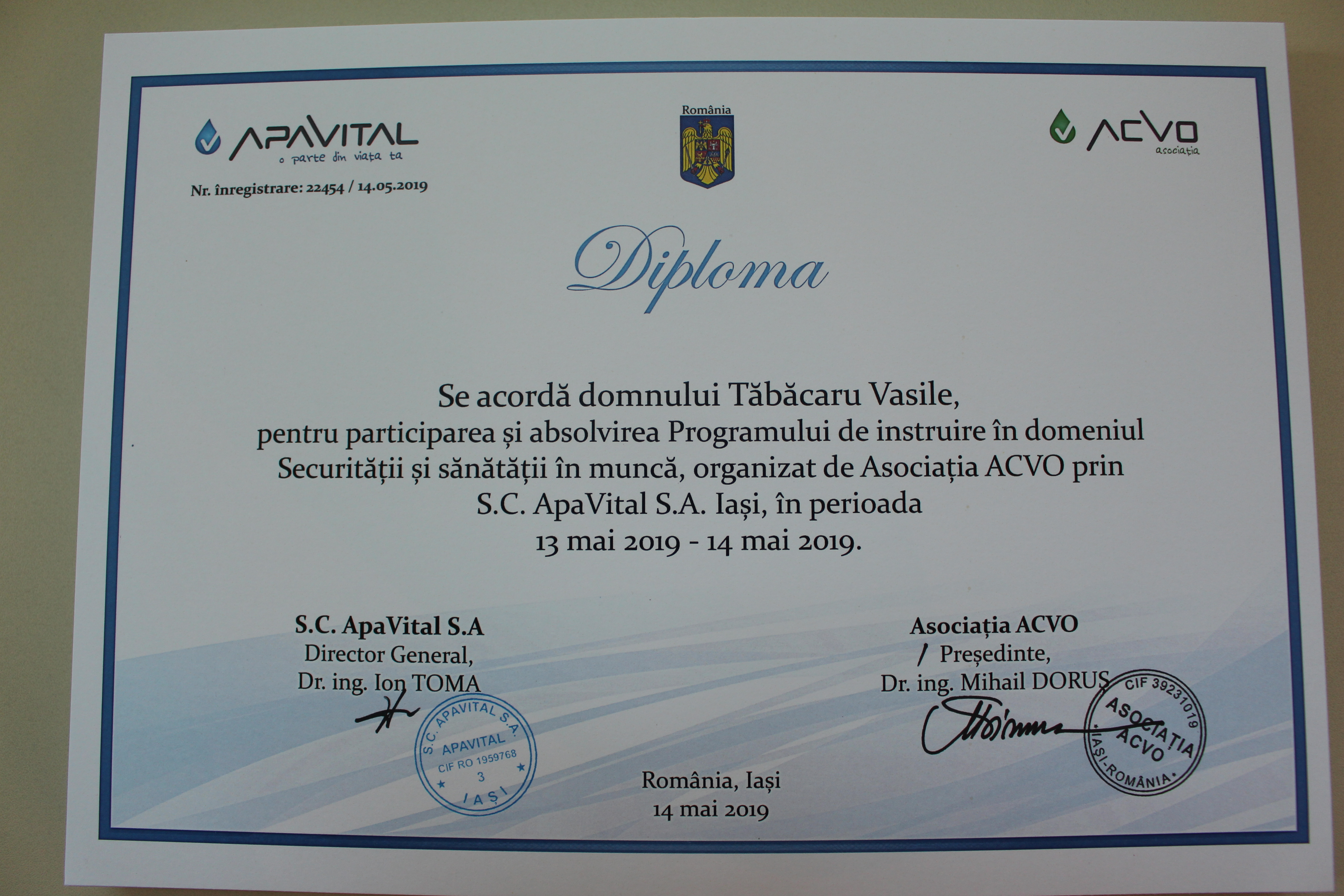 Direcția Executivă a AMAC în colaborare cu S.C. Apavital S.A. Iași, România, în perioada 12 – 14 mai 2019, în cadrul Centrului de Instruire, a organizat schimbul de experiență în domeniul securității și sănătății în muncă în cadrul operatorilor serviciilor de alimentare cu apă și de canalizare. În cadrul misiunii au participat 46 persoane, directori de întreprinderi, ingineri șefi, specialiști securitate și sănătate în muncă din cadrul întreprinderilor de alimentare cu apă și de canalizare membre AMAC.
